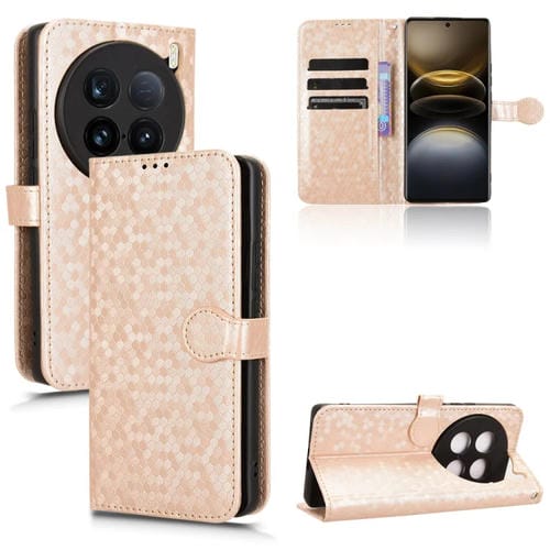 Funda de Cuero con Textura de Puntos En Forma de Panal para Vivo X100 Ultra (Dorada)