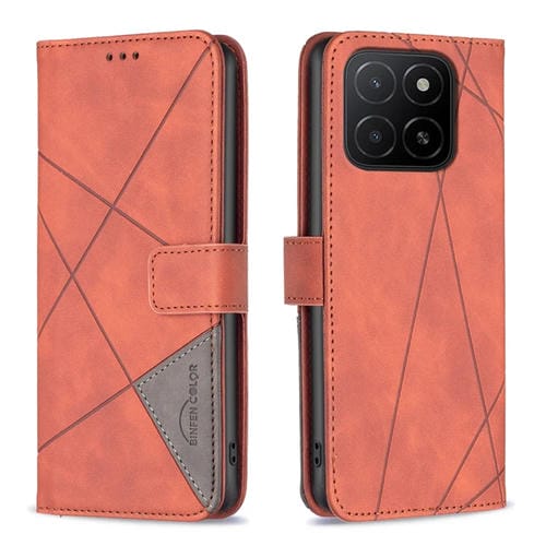 Funda de Cuero con Textura de Rombos y Hebilla Magnética para Honor X5B (Marrón)