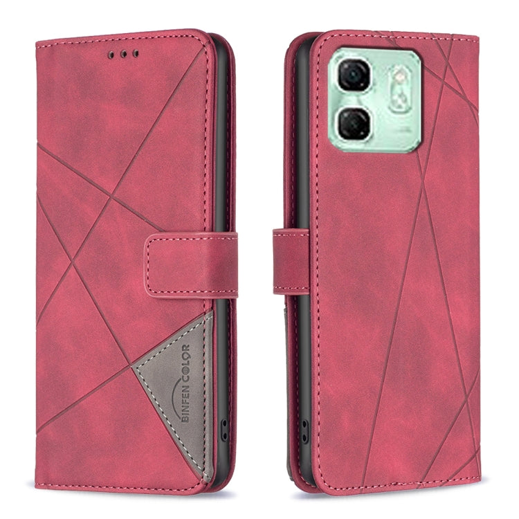 Funda de Cuero con Textura de Rombos y Hebilla Magnética para Infinix Smart 9 Hot 50I (Rojo)