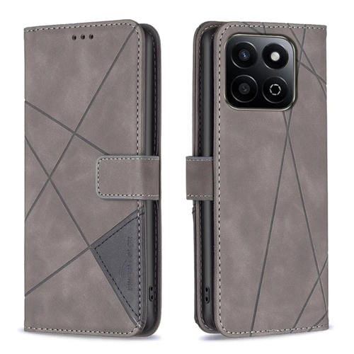Funda de Cuero Textura de Rombos con Hebilla Magnética para Honor 200/X7C (Gris)