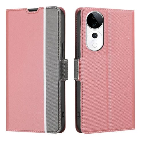 Funda de Cuero con Textura de Sarga y Botones Laterales para Teléfono Vivo S19 Pro (Rosa)