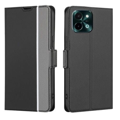 Funda de Cuero con Textura de Sarga y Botones Laterales para Vivo Y28 4G (Negra)