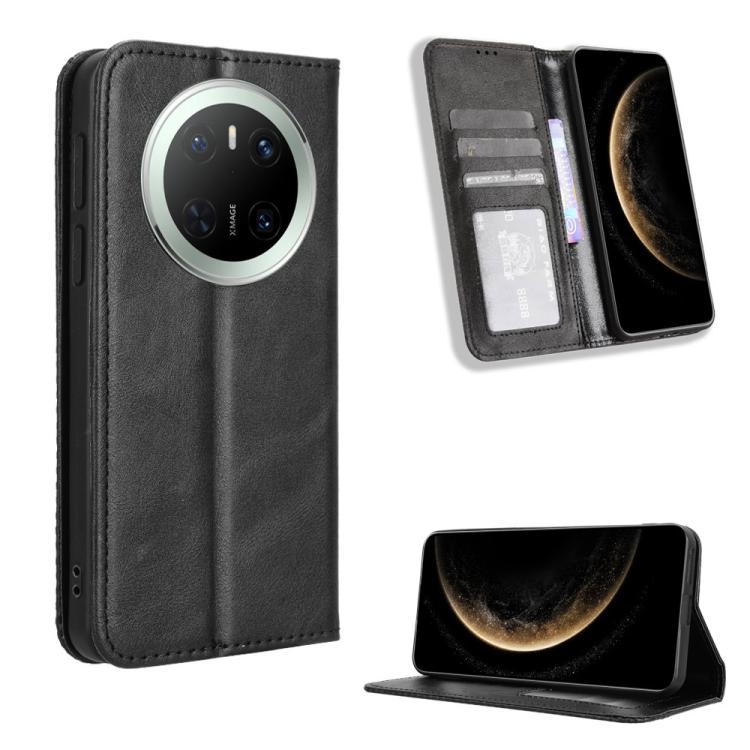 Funda de Cuero con Textura Retro y Hebilla Magnética para Huawei Mate 70 (Negra)