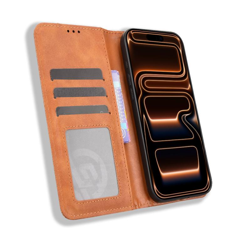 Funda de cuero con textura retro y hebilla magnética para iPhone 17 Pro Max (marrón)