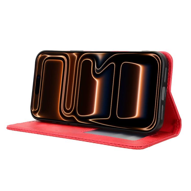 Funda de cuero con textura retro y hebilla magnética para iPhone 17 Pro Max (roja)