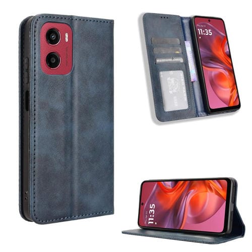 Funda de Cuero con Textura Retro y Hebilla Magnética para Motorola Moto G05 4G / E15 4G (Azul)