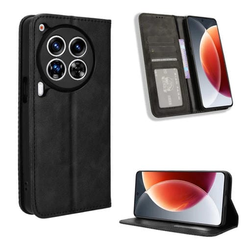 Funda de Cuero Tecno Camon 30 Premier 5G Textura Retro Hebilla Magnética (Negro)