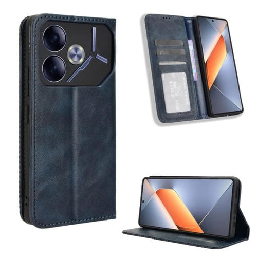 Funda de Cuero Retro con Hebilla Magnética para Tecno Pova 6 4G (Azul)
