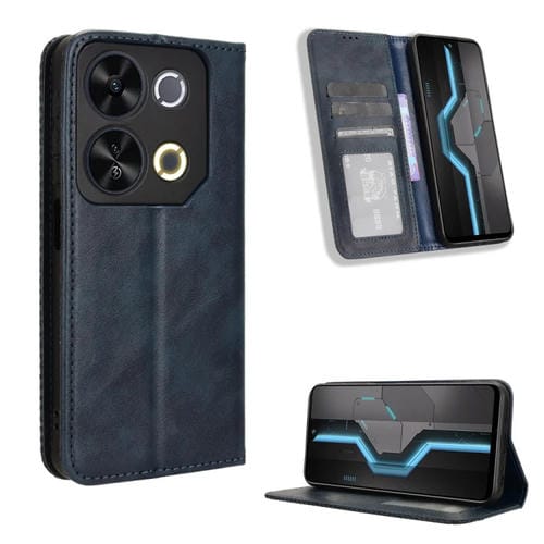Funda de Cuero Itel P65 4G con Textura Retro y Hebilla Magnética (Azul)