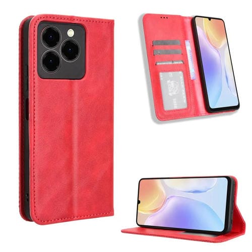 Funda de Cuero para Ulefone Note 20 Pro con Textura Retro y Hebilla Magnética (Rojo)