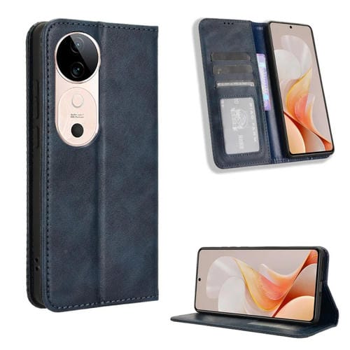 Funda de Cuero con Textura Retro y Hebilla Magnética para Vivo S19 5G (Azul)