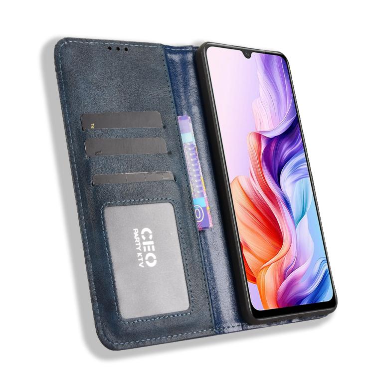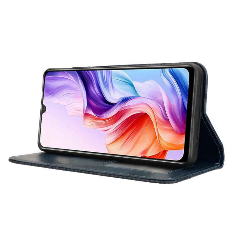 Funda de cuero con textura retro y hebilla magnética para ZTE Blade A76 5G (azul)