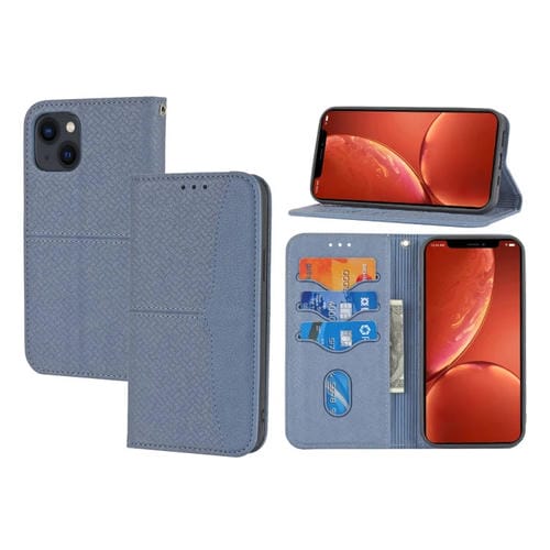 Funda de Cuero para iPhone 14 Textura Tejida (Gris)