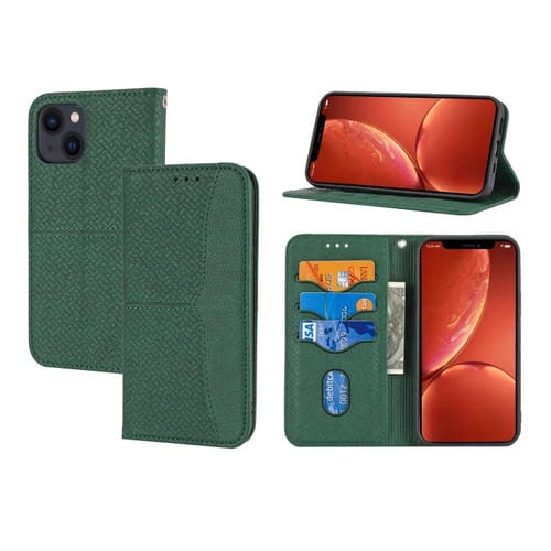 Funda Cuero Textura Tejida para iPhone 14 (Verde)