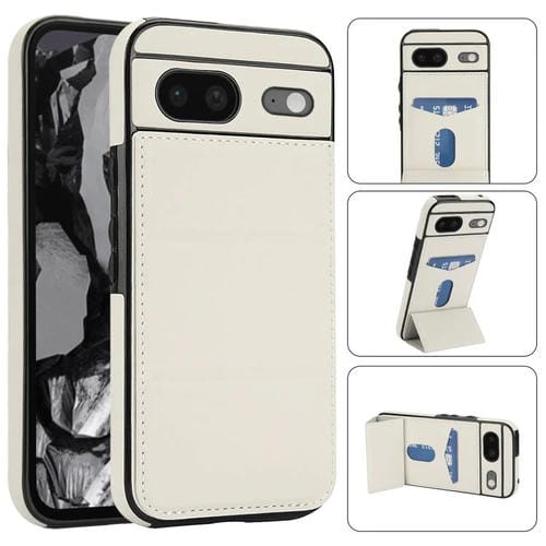 Funda de Cuero con Tres Pliegues para Google Pixel 8 con Ranura para Tarjetas (Blanca)