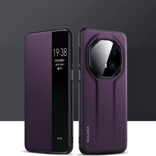 Funda de Cuero con Ventana Inteligente y Textura Kevlar 600D para Huawei Mate 70 Rs Ultimate (Morado)