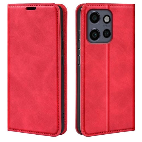 Funda de Cuero con Ventosa Magnética para Motorola Moto Edge 50 Neo 5G Retro-Skin (Rojo)