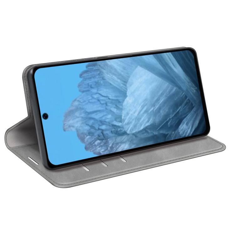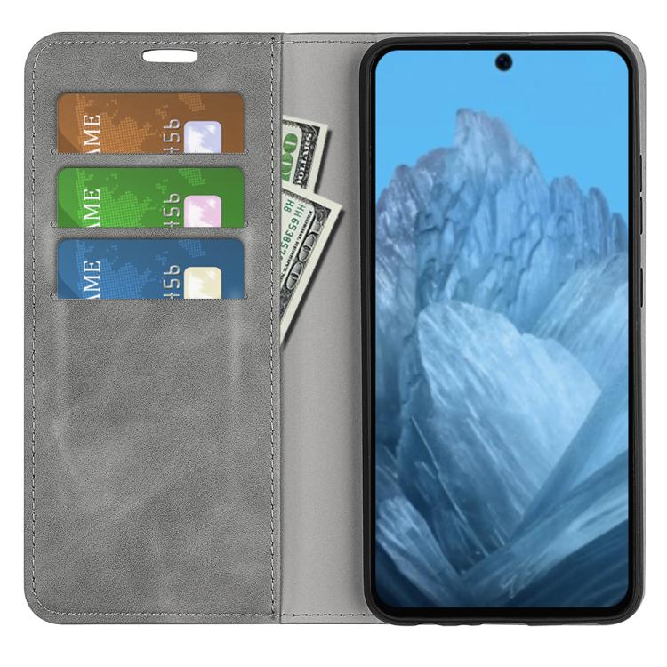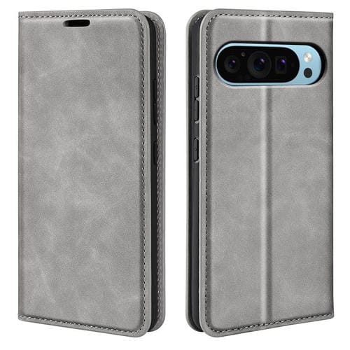 Funda de Cuero con Ventosa Magnética para Google Pixel 9/9 Pro Retro-Skin (Gris)