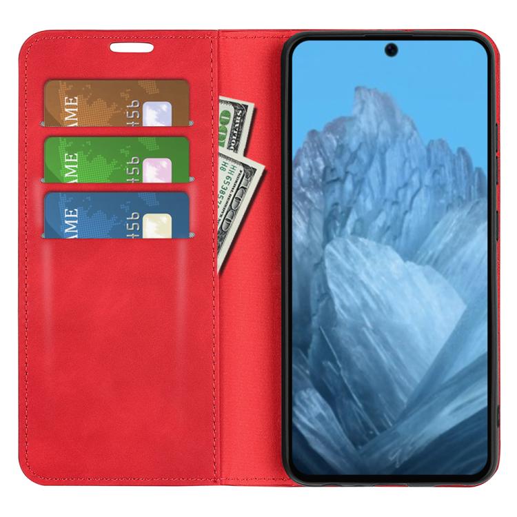 Funda de Cuero con Ventosa Magnética para Google Pixel 9/9 Pro Retro-Skin (Rojo)