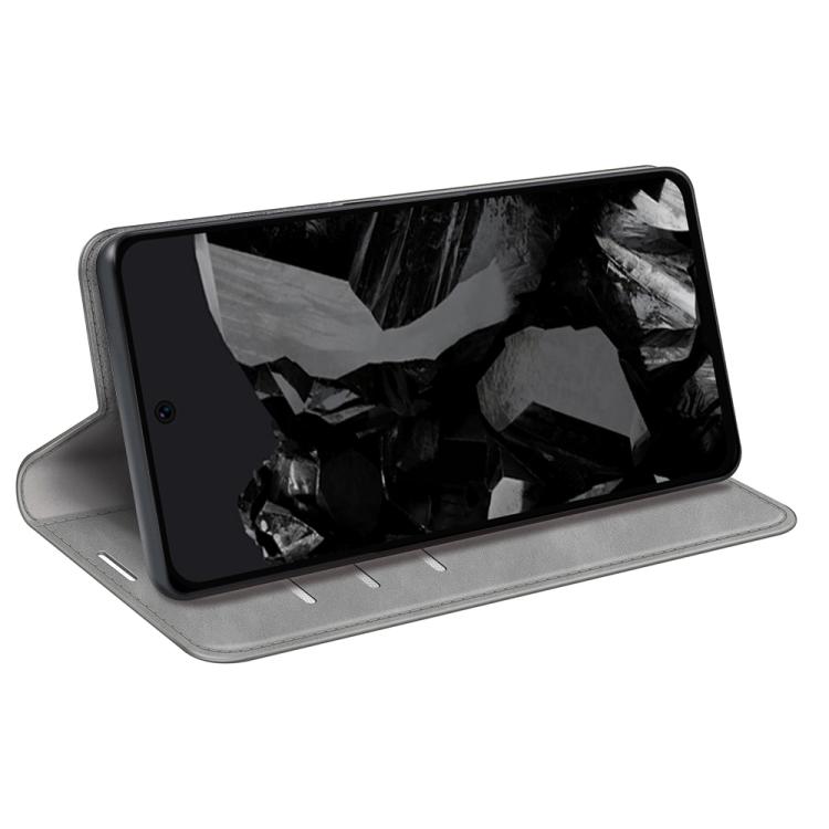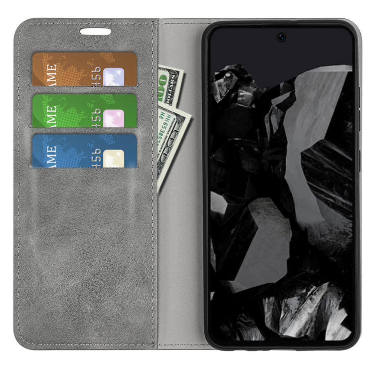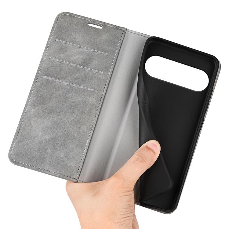 Funda de Cuero con Ventosa Magnética para Google Pixel 9 Pro XL (Gris) Retro-Skin