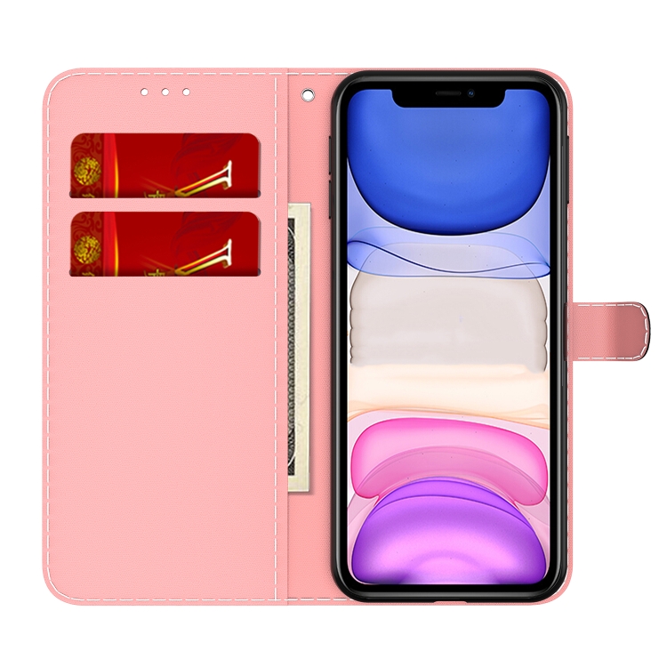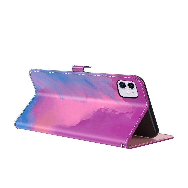Funda de Cuero Flip Horizontal Patrón Acuarela con Soporte y Ranura para Tarjeta y Billetera para iPhone 11 (Rojo Púrpura)