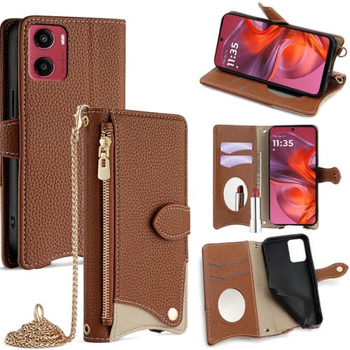 Funda de Cuero de Lichi con Cola de Pez y Cadena Cruzada para Motorola Moto G05 (Marrón)