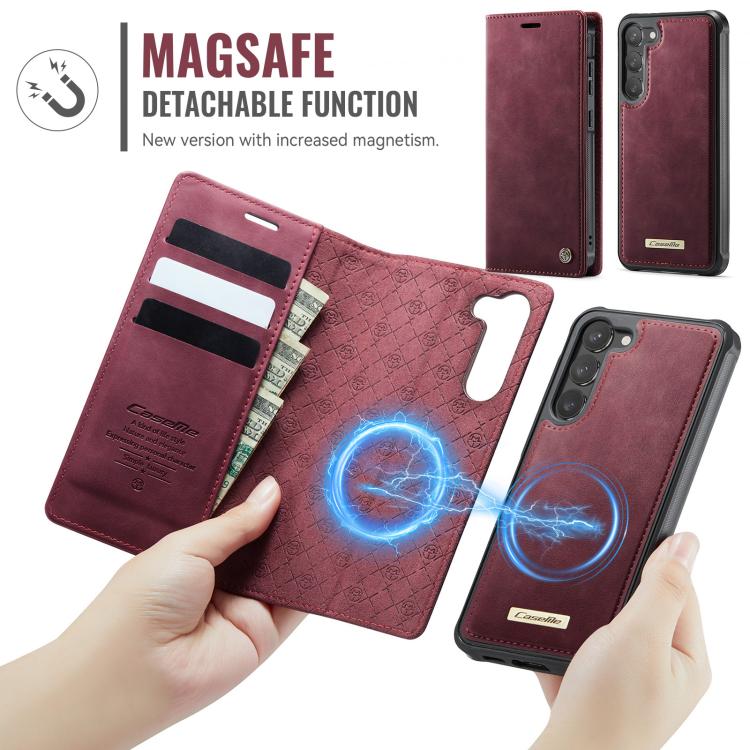 Funda de cuero desmontable con bloqueo RFID magnético para Samsung Galaxy S23+ 5G CaseMe C49 (roja)