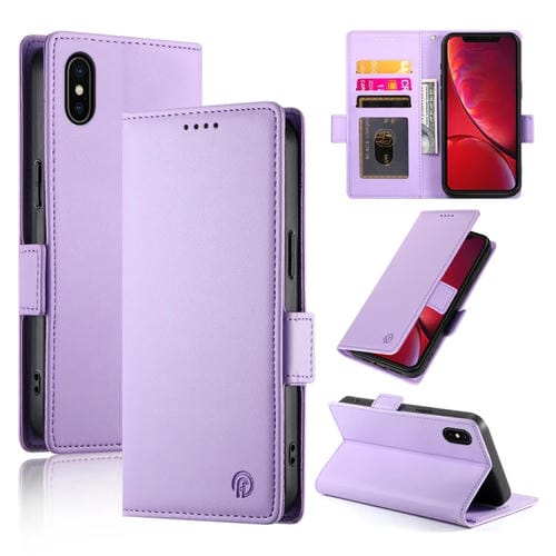 Étui en cuir givré à boucle latérale magnétique pour iPhone X/XS (violet)