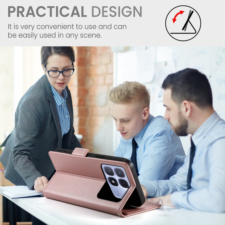 Funda de Cuero Esmerilado con Hebilla Lateral Magnética para Redmi K70 Ultra (Oro Rosa)