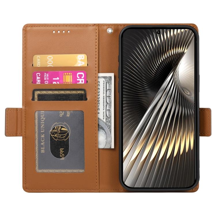 Funda de cuero esmerilado con hebilla lateral magnética para Redmi Turbo 4 Pro / Xiaomi Poco F7 (marrón)