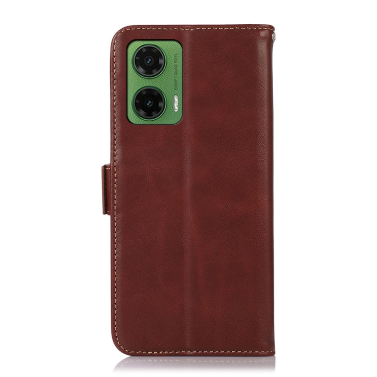 Funda de Cuero Genuino Crazy Horse Magnética para Motorola Moto G35 (Marrón)