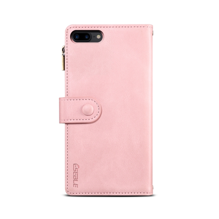 Funda Cuero Horizontal Hellado Retro con Soporte Ranura Tarjeta Billetera Cremallera Pocket Lanyard para iPhone 8 Plus 7 Plus (Oro Rosa)