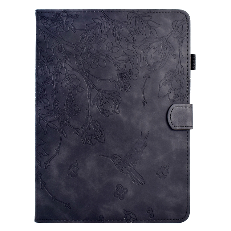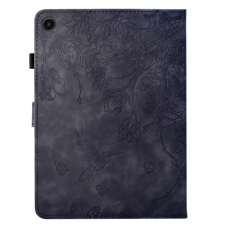 Funda de Cuero Inteligente Samsung Galaxy Tab A9+ Estampado Flores y Pájaros (Negra)