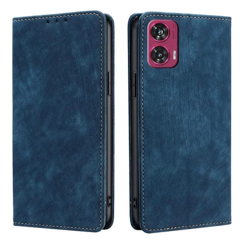 Funda de Cuero Magnética con Cepillo Antirrobo RFID para Motorola Edge 50 Fusion 5G (Azul)