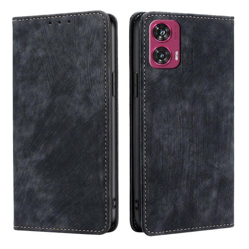 Funda de Cuero Magnética con Cepillo Antirrobo RFID para Motorola Edge 50 Fusion 5G (Negro)