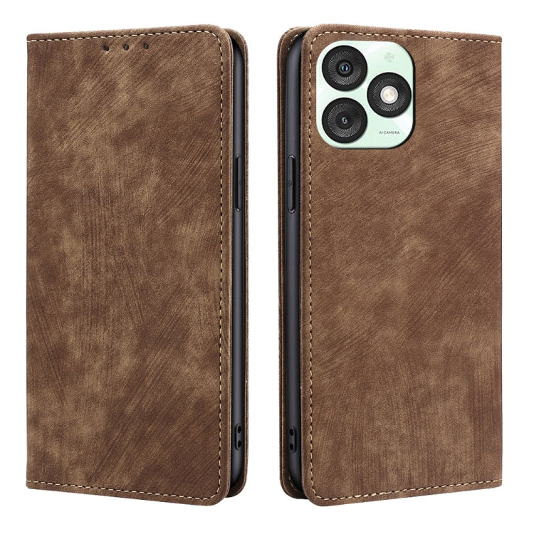 Funda de Cuero Magnética con Cepillo Antirrobo RFID para Teléfono Itel A50 4G (Marrón)