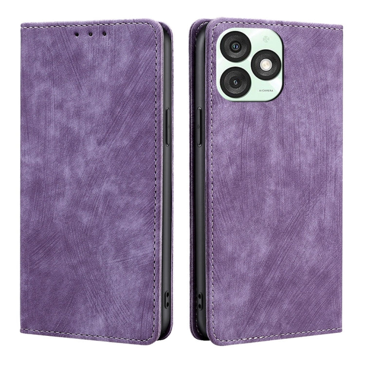 Funda de Cuero Magnética con Cepillo Antirrobo Rfid para Teléfono Itel A50 4G (Morado)