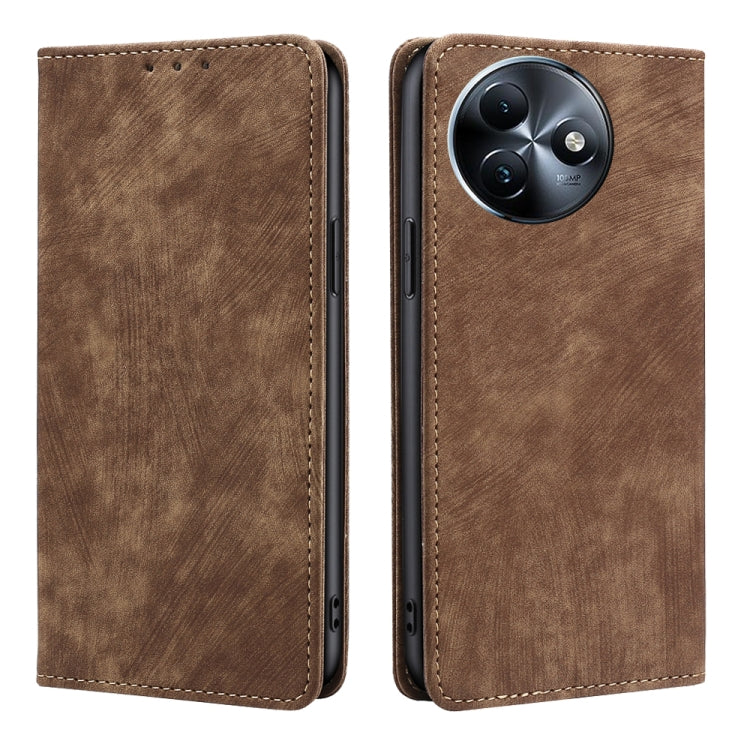 Funda de Cuero Magnética con Cepillo Antirrobo Rfid para Teléfono Itel S24 4G (Marrón)