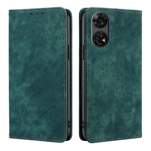 Funda de Cuero Magnética con Cepillo Antirrobo RFID para Teléfono ZTE Anshin Family (Verde)
