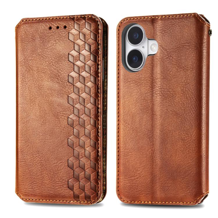 Funda de cuero magnética con diseño de cuadrícula cúbica para iPhone 17 (marrón)