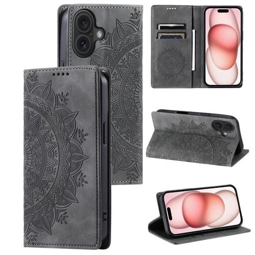 Funda de Cuero Magnética con Relieve Totem para iPhone 16 Plus (Gris)