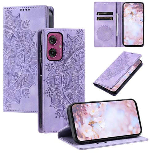 Funda de Cuero Magnética con Relieve Totem para Motorola Moto G55 (Morado)