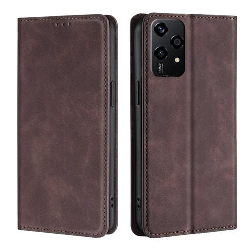 Funda Cuero Magnética con Tacto de Piel Global para Honor 200 Lite 5G (Marrón Oscuro)