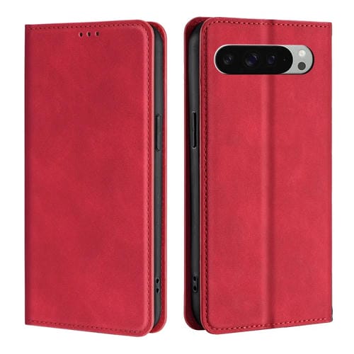 Funda de Cuero Magnética con Tacto de Piel para Google Pixel 9 Pro XL (Roja)