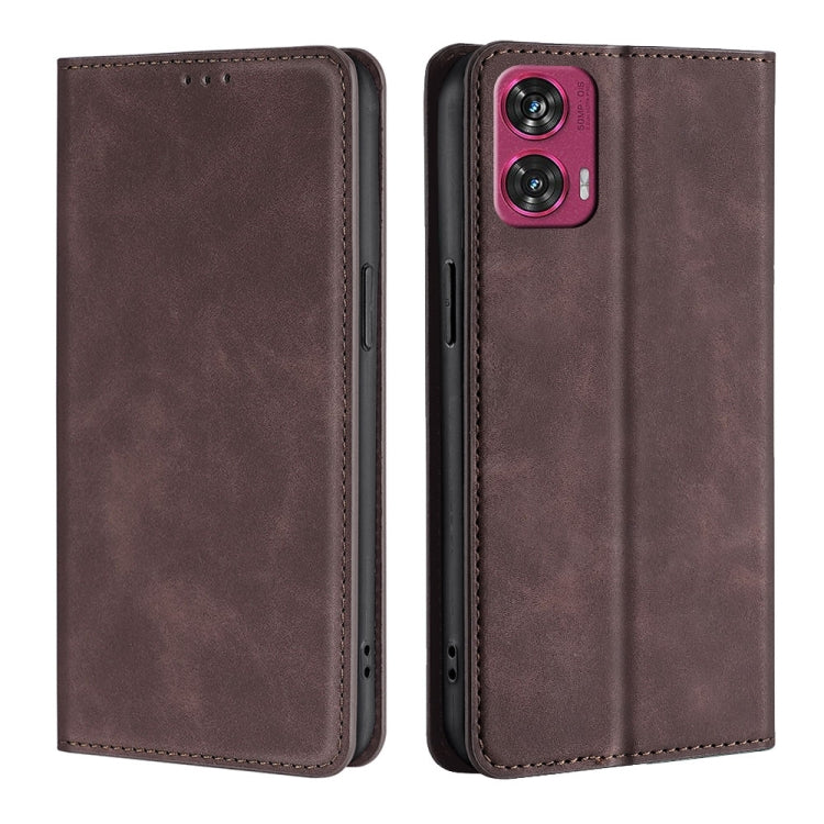 Funda de Cuero Magnética con Tacto de Piel para Motorola Edge 50 Fusion 5G (Marrón Oscuro)