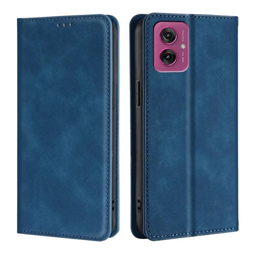 Funda de Cuero Magnética con Tacto de Piel para Motorola Moto G55 5G (Azul)