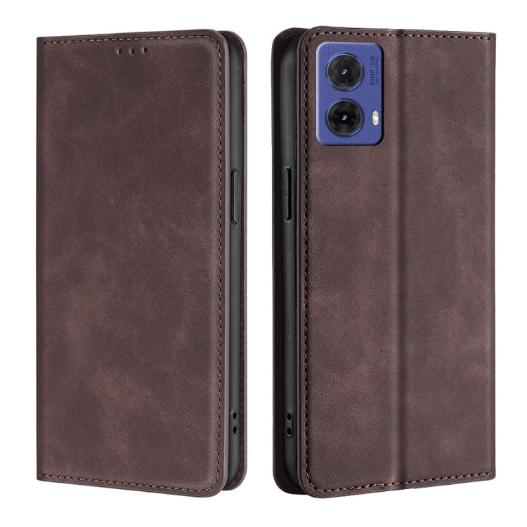 Funda de Cuero Magnética con Tacto de Piel para Motorola Moto G85 5G (Marrón Oscuro)