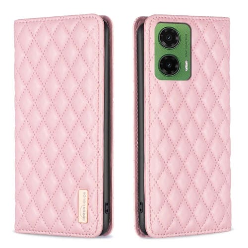 Funda de Cuero Magnética con Tapa Tipo Diamante para Motorola Moto G35 (Rosa)
