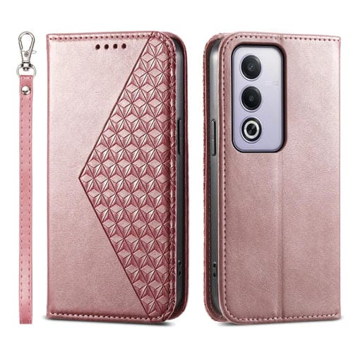 Funda de Cuero Magnética con Textura de Becerro y Cuadrícula Cúbica para Oppo A3 Pro 5G (Oro Rosa)