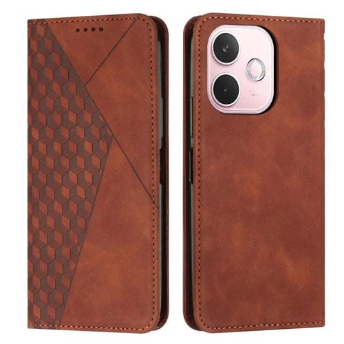 Funda de Cuero Magnética con Textura de Diamante para Oppo A5 Pro 5G (Marrón)